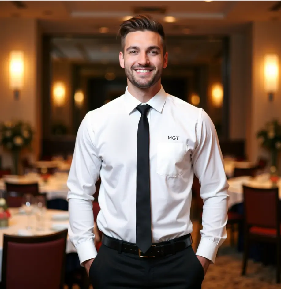 Our hospitality uniforms are made from high-quality fabrics, ensuring long-lasting comfort during long work hours.